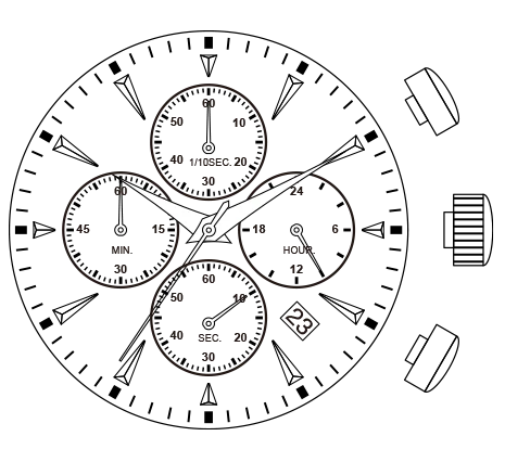 7针/日历/24小时/1/10秒计时/小秒计时/小分计时